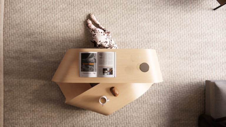 Not only is this piece of furniture highly practical, but it also challenges conventional form and embodies a thoughtful, sculptural design that bridges concept and everyday use. It invites users not only to place objects on it, but also to engage with and experience space in an entirely different way.